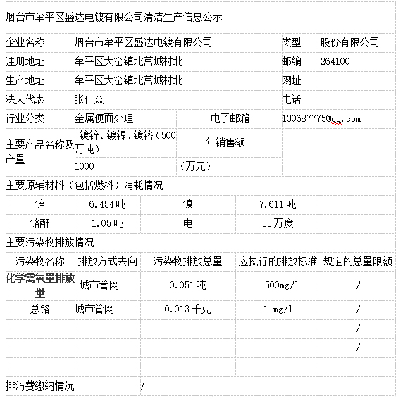 煙臺(tái)市牟平區(qū)盛達(dá)電鍍有限公司清潔生產(chǎn)審核公示